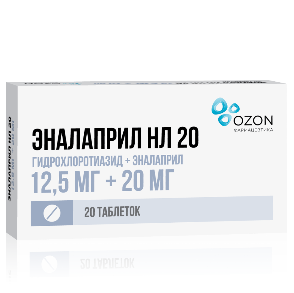 Активные вещества: эналаприла малеат — 20,0 мг + гидрохлоротиазид 12,5 мг.