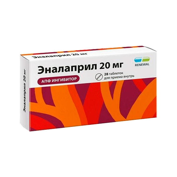 Действующее вещество: ;эналаприла ;малеат — 5,0 ;мг, 10,0 ;мг, 20,0 ;мг;