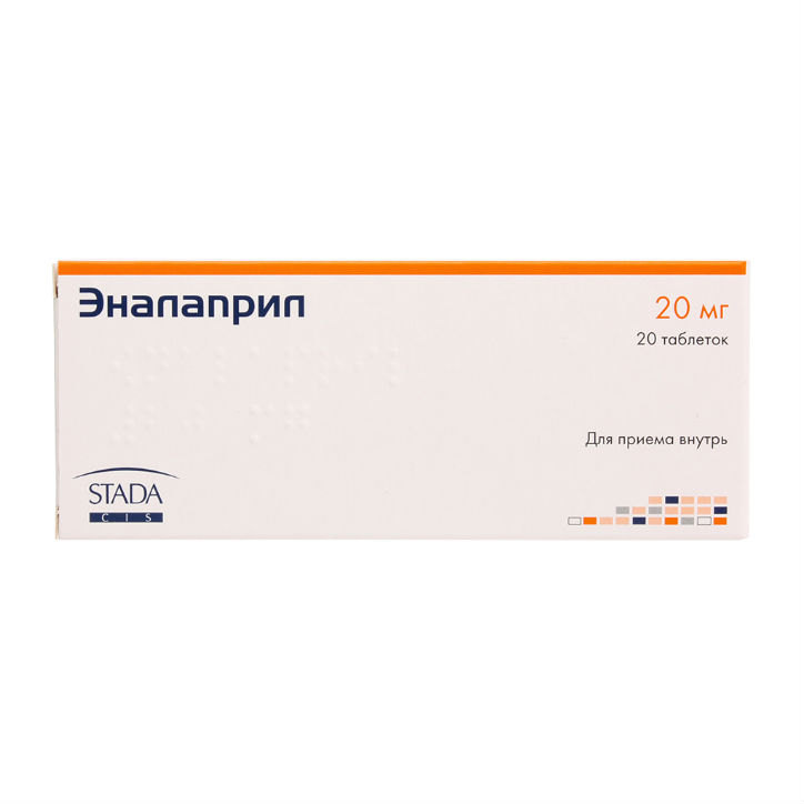Активное вещество: эналаприла малеат — 20 мг.
