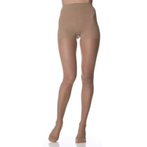 Колготки антиварикозные выполнены из комбинированных материалов. Антиварикозный трикотаж 2-го класса обладает компрессионным воздействием на подлежащие мягкие ткани (23–32 мм ртутного столба). Способствует нормализации оттока венозной крови за счет градуированной компрессии на мышцы и венозную стенку. В области щиколотки и голеностопного сустава компрессия составляет 100%, ниже коленного сустава компрессия уже 70%, а в верхней трети бедра – не более 40% от начального значения. Постепенное снижение компрессии позволяет нормализовать отток жидкости из нижних отделов ног, защищает венозную стенку от деформации и ускоряет ток крови, что упрощает и нормализует работу венозной помпы. Специальная высокотехнологичная вязка компрессионного трикотажа позволяет оказывать дозированное давление в течение всего дня. Использование компрессионного трикотажа – общепризнанный метод профилактики и лечения болезней вен нижних конечностей.