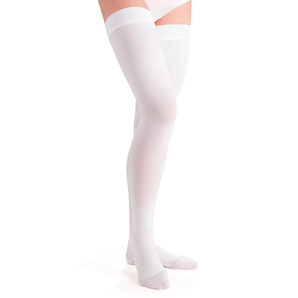 Чулки Ergoforma TU 257 антиэмболитические, 1 класс выполнены из особого материала, который создает градуированную компрессию (в области лодыжек – 100%, верхней трети голени – 70%, бедренной области – 40%) по всей нижней конечности. Антиэмболические чулки первого класса компрессии в отличие от второго могут использоваться при отсутствии патологии вен нижних конечностей, тем самым увеличивая спрос на данный трикотаж. Первый класс компрессии, по статистике, очень часто рекомендуется врачами стационаров, что повышает востребованность изделия. Специальная высокотехнологичная вязка компрессионного трикотажа позволяет оказывать дозированное давление в течение всего периода применения. Использование компрессионного трикотажа – общепризнанный метод профилактики и лечения болезней вен нижних конечностей. 1 класс компрессии (18-21 мм рт.ст.). Цвет: белый.
