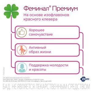 Женщинам по 1-3 капсулы в день во время еды. Стандартная продолжительность приема биологически активной добавки к пище "Феминал Премиум" - 1 месяц, после консультации с врачом может быть продлена.