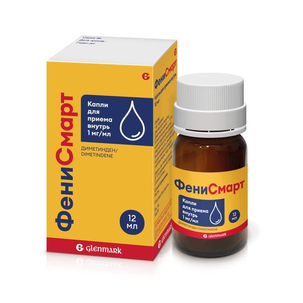Препарат Фенисмарт содержит действующее вещество диметинден, который относится к группе антигистаминных препаратов. Препарат предотвращает развитие и облегчает течение аллергии путём подавления действия гистамина, вещества, вырабатываемого в организме при развитии аллергической реакции, препарат Фенисмарт облегчает такие симптомы аллергии, как чихание, насморк, кашель, сыпь, зуд, слезотечение.