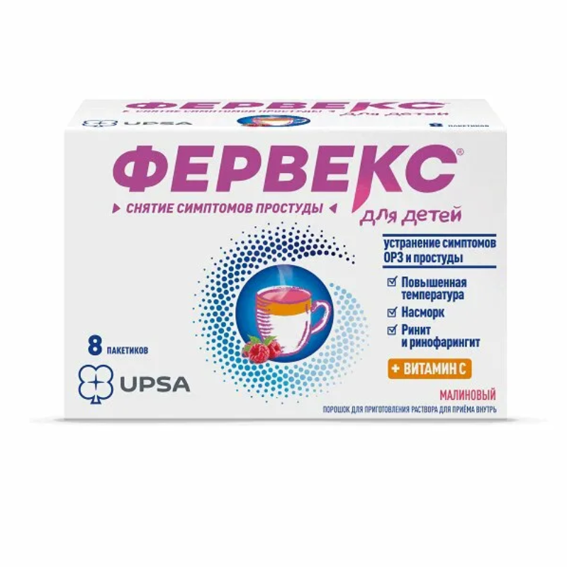 Фервекс для детей порошок для приготовления раствора для приёма внутрь малиновый пакетики №8