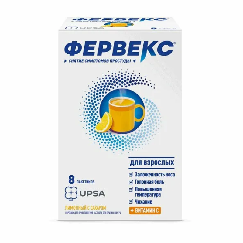 Фервекс порошок для приготовления раствора для приёма внутрь лимонный с сахаром пакетики №8