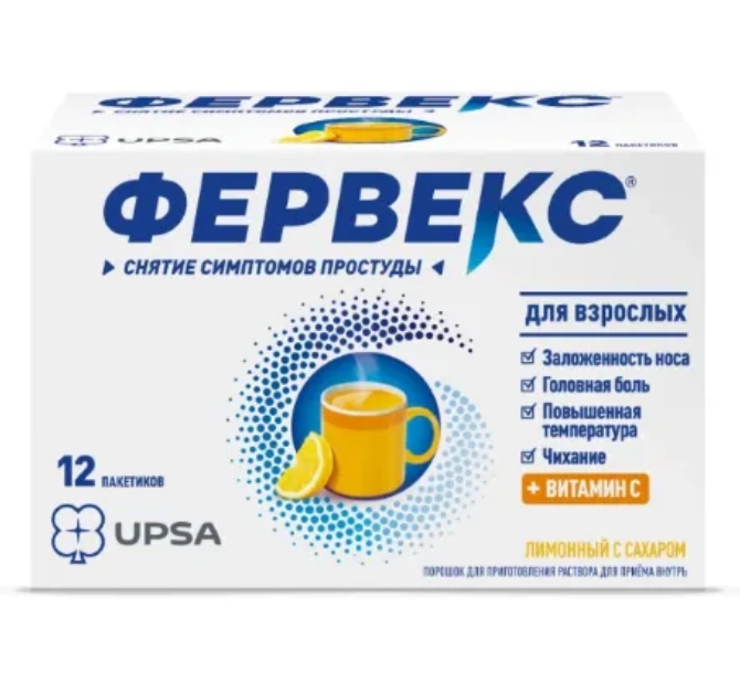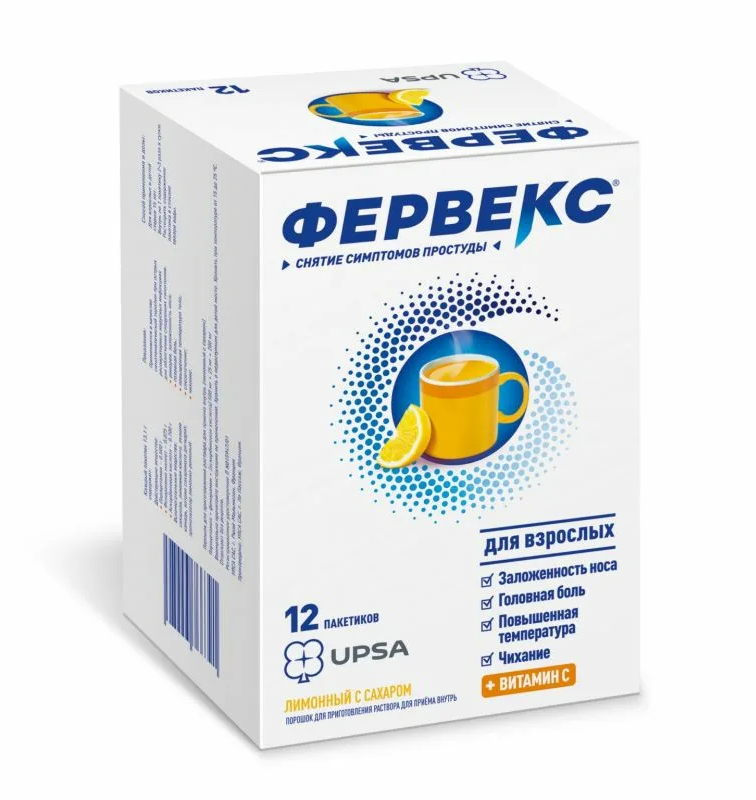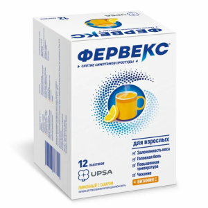 Фервекс® — комбинированный препарат, который содержит парацетамол, фенирамин и аскорбиновую кислоту. Парацетамол — ненаркотический анальгетик, блокирует циклооксигеназу, преимущественно в центральной нервной системе, воздействуя на центры боли и терморегуляции оказывает анальгезирующее и жаропонижающее действие.
