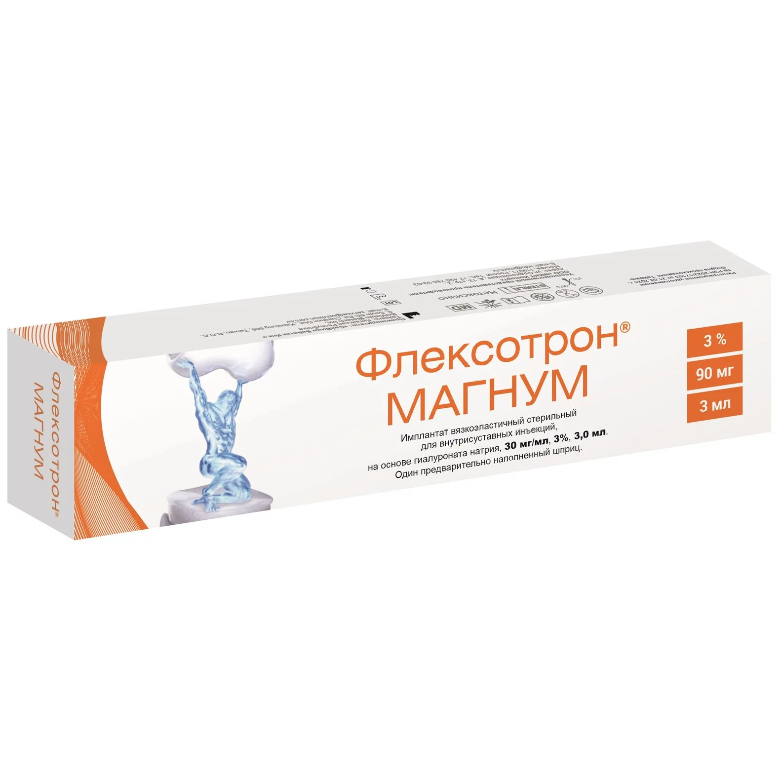 Имплантат вязкоэластичный стерильный для внутрисуставной инъекции ФЛЕКСОТРОН® Магнум (FLEXOTRON Magnum), на основе гиалуроната натрия 30 мг/мл, 3%, 3,0 мл.