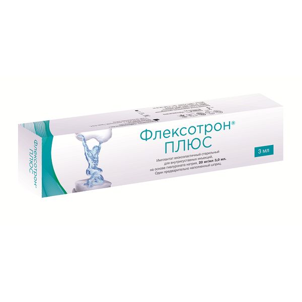 Имплантат вязкоэластичный стерильный для внутрисуставной инъекции ФЛЕКСОТРОН® ПЛЮС (FLEXOTRON® Plus), гиалуронат натрия 20 мг/мл, 3 мл.