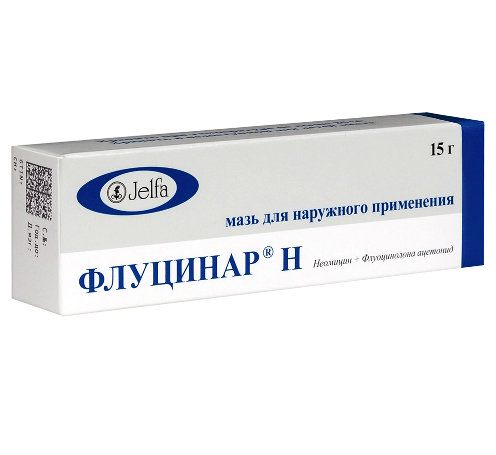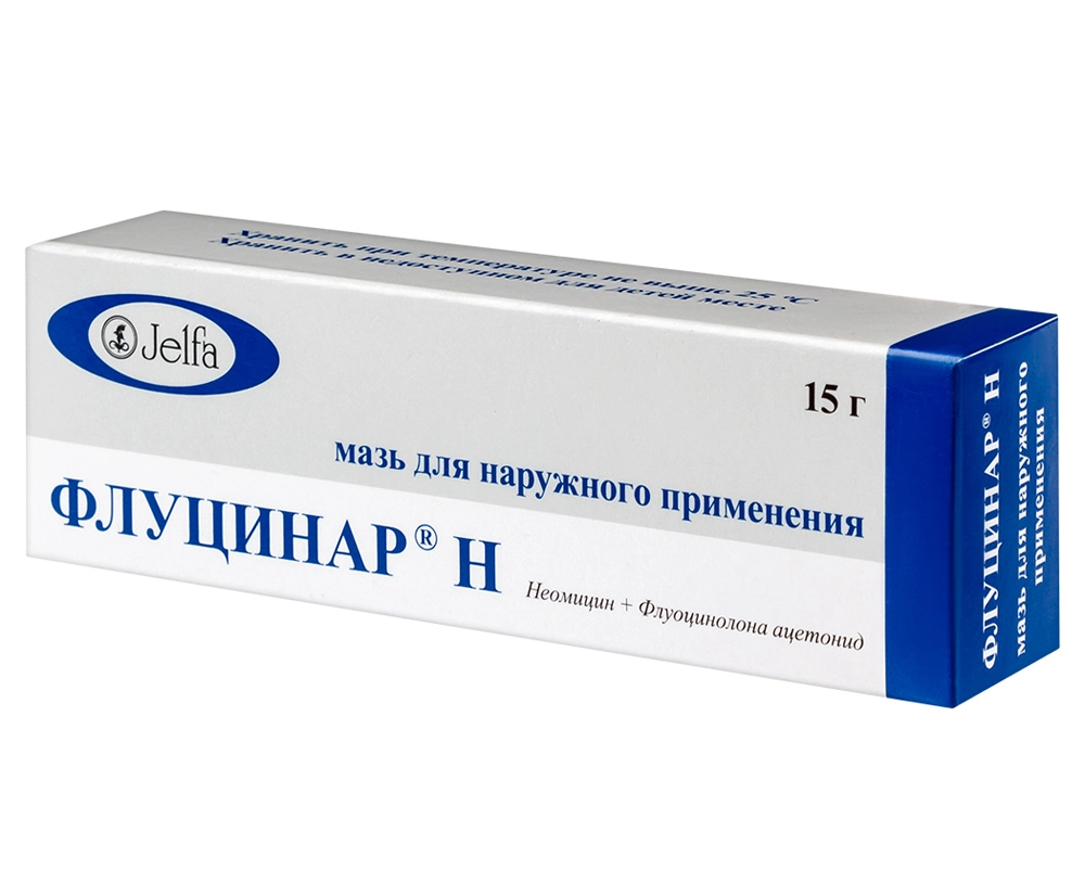 Флуцинар® Н — комбинированный препарат, действие которого обусловлено компонентами, входящими в его состав. В результате суммарного действия флуоцинолона ацетонида и неомицина препарат подавляет развитие воспалительно-аллергических реакций кожи, осложнённых бактериальной инфекцией.