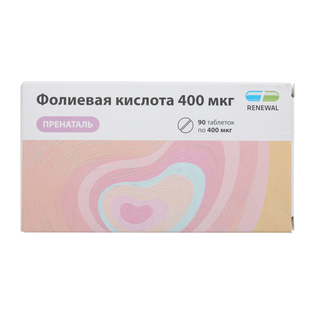 Фолиевая кислота 400мкг пренаталь таблетки массой 100мг №90