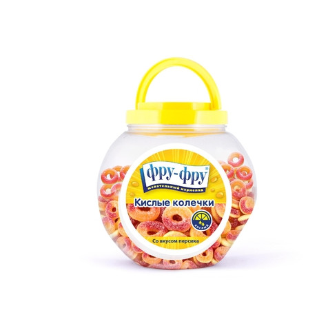 Жевательный мармелад "Фру-Фру" "Кислые колечки" выполнен в форме небольших колечек в кислой обсыпке - она и придаёт ему незабываемую кислинку, которая, смешиваясь со вкусом персика, приобретает ноту приятной свежей сладости. Мармелад производится на современном оборудовании в Чехии по уникальной рецептуре, придающей его консистенции особенную мягкость. Продукт изготавливается с использованием натуральных ингредиентов и содержит 5% виноградного сока. В составе нет искусственных красителей и ароматизаторов. Кроме того, "Фру-Фру" "Кислые колечки" - это безглютеновый продукт и отлично подойдёт тем, у кого на этот сложный белок аллергия или кто отказался от его употребления.