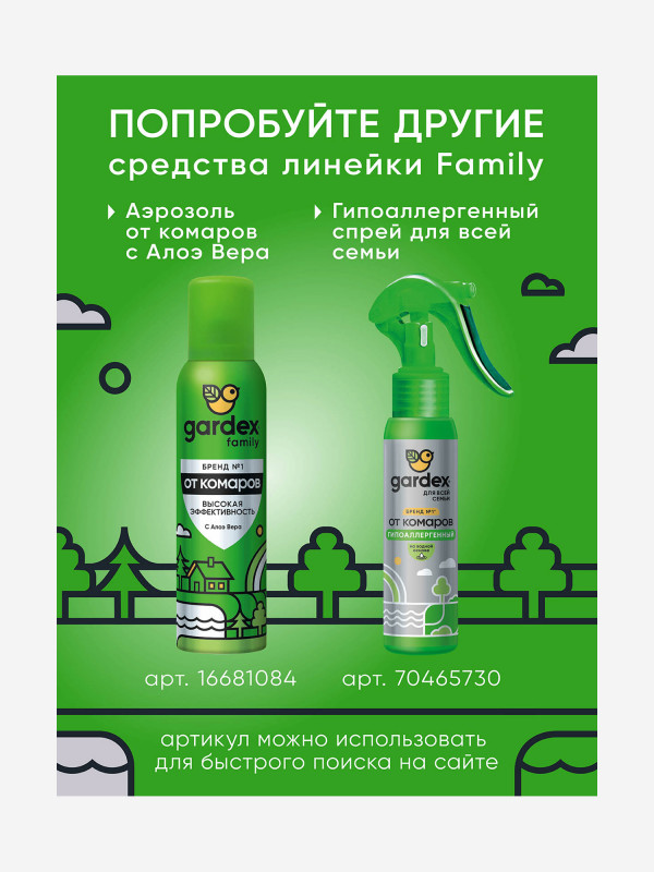 Мы сложили самые современные технологии и бережную заботу о коже в исключительную формулу и представляем уникальную новинку, разработанную для защиты от насекомых взрослых и детей с 6 лет с чувствительной кожей — Gardex Sensitive Аэрозоль от комаров.