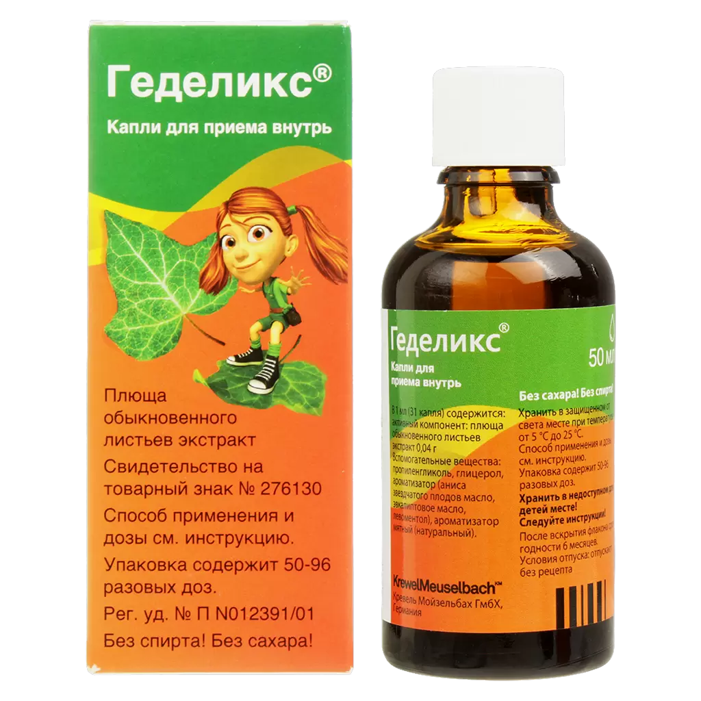 Активные вещества: Плюща листьев экстракт (2,2–2,9:1) — 4,000