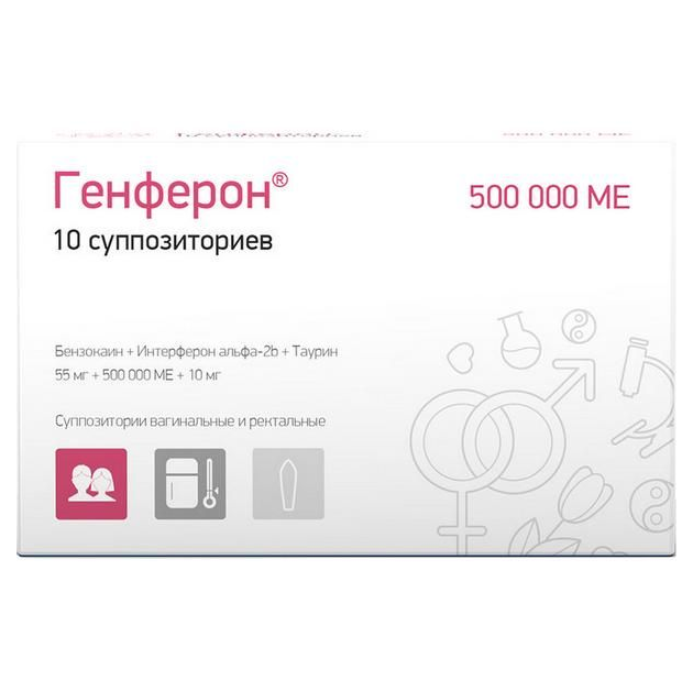 Генферон суппозитории вагинальные и ректальные 55мг+500000 МЕ+10мг №10