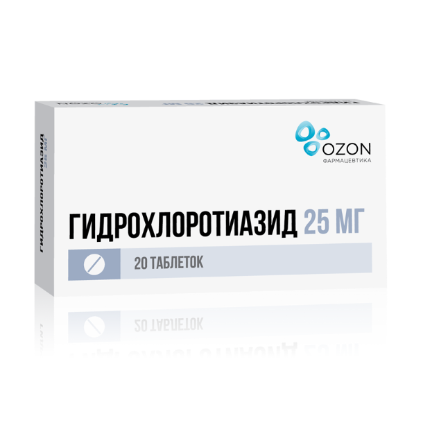 Активное вещество: гидрохлоротиазид - 25,0 мг.