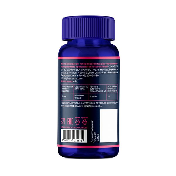 GLS Лизин 1000 капсулы 400мг №90