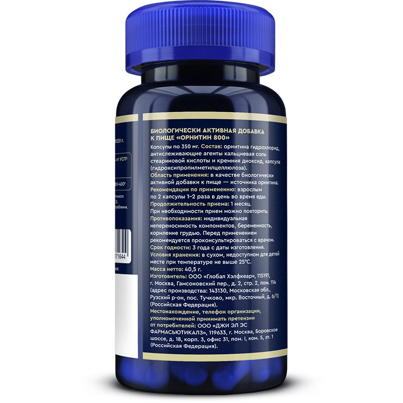 Орнитина гидрохлорид, антислеживающие агенты кальциевая соль стеариновой кислоты и кремния диоксид, капсула (носитель гидроксипропилметилцеллюлоза или желатин).