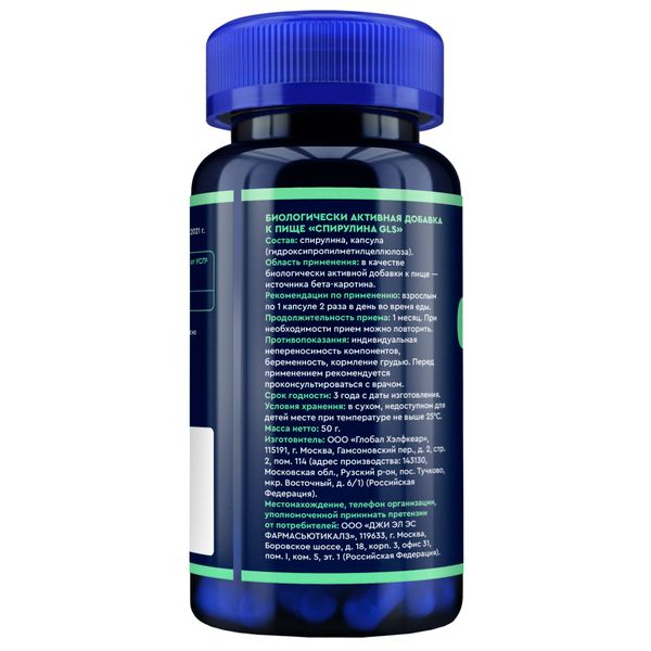 Спирулина, капсула (гидроксипропилметилцеллюлоза).