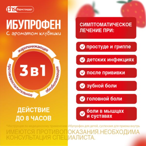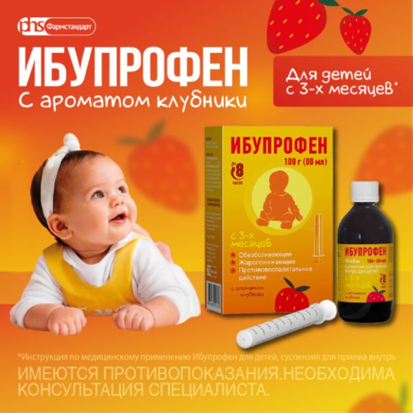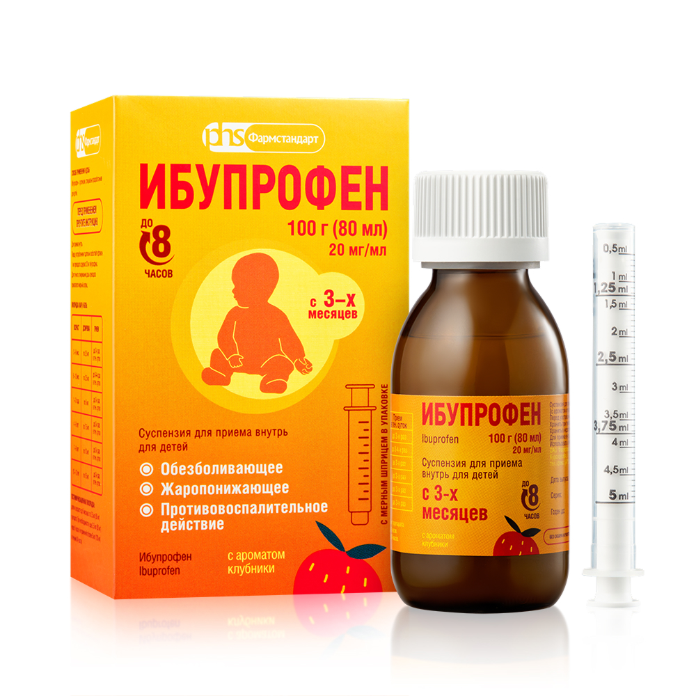 Ибупрофен суспензия для приема внутрь с ароматом клубники 100 мг/5 мл флакон 80мл