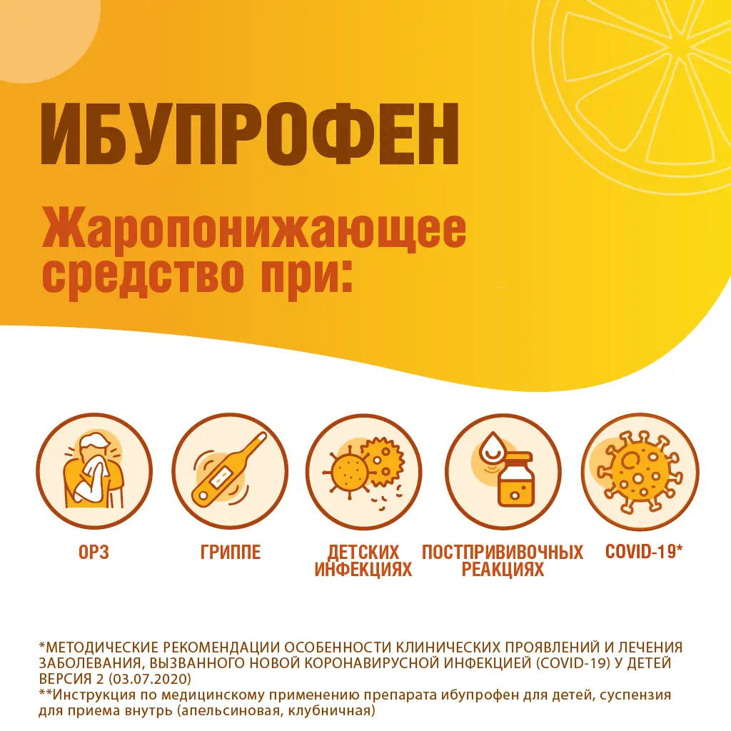 Ибупрофен суспензия для приема внутрь с ароматом апельсина 100 мг/5 мл флакон 160мл
