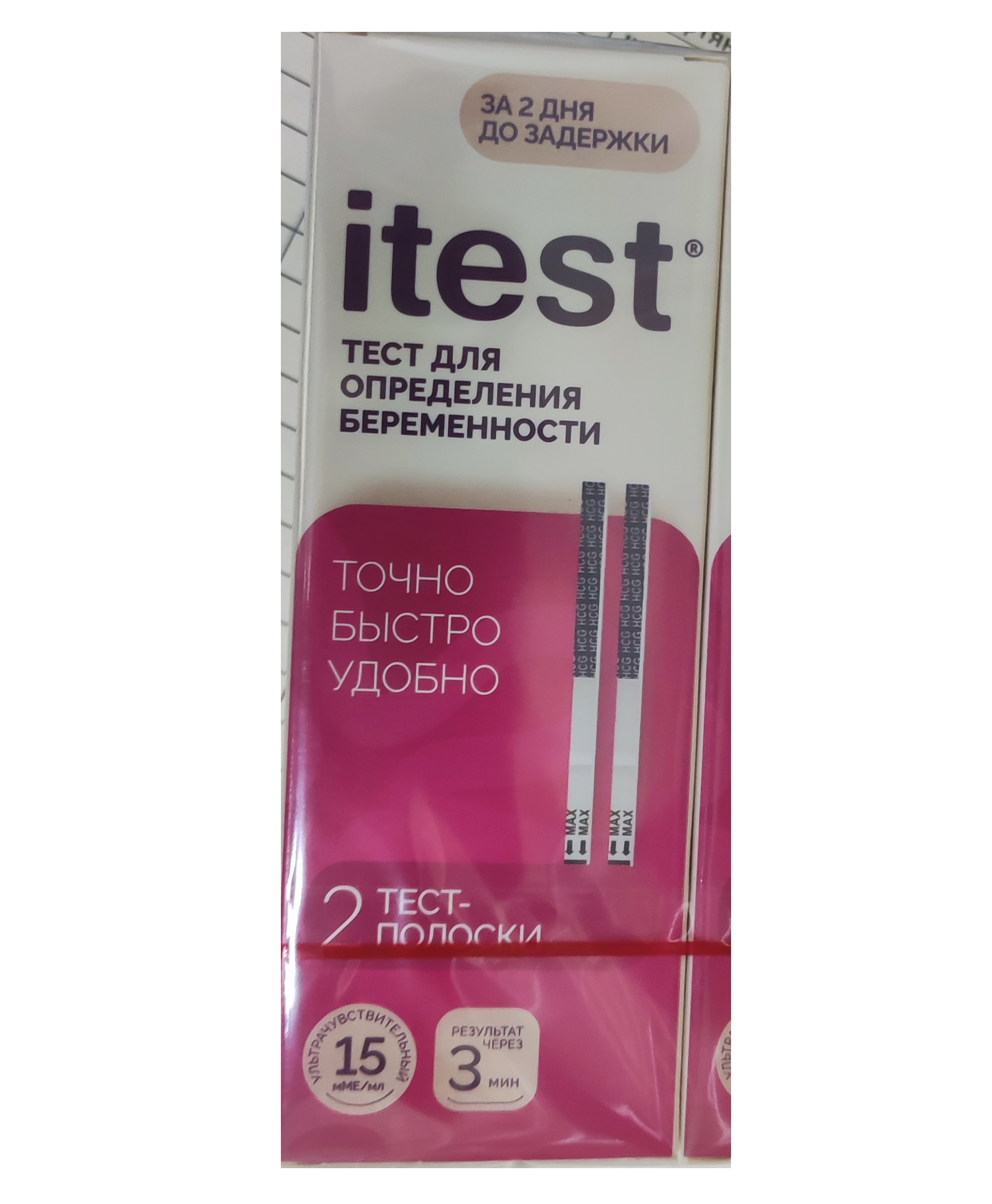 Тест на беременность "Itest" (тест полоска). Определение беременности в домашних условиях. Тест рекомендован с первого дня задержки. Чувствительность теста от 25 мМе/мл