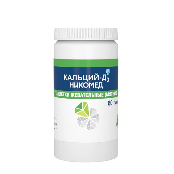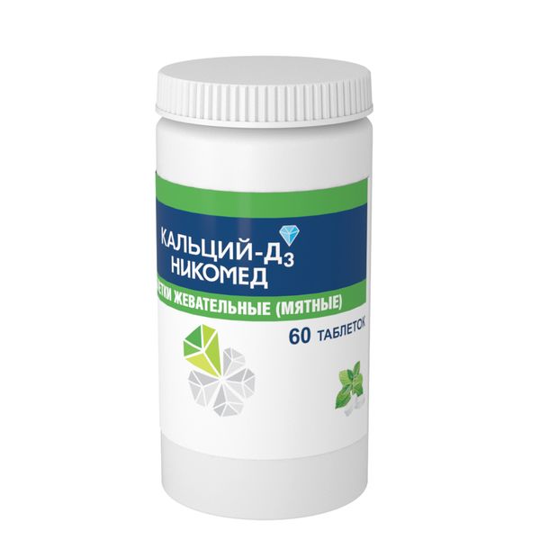 Кальций-Д3 Никомед таблетки жевательные мятные 500мг+200МЕ №60