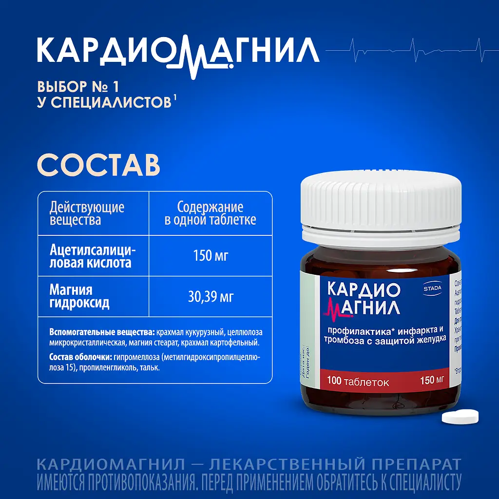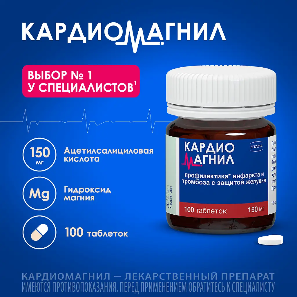 Кардиомагнил таблетки покрытые плёночной оболочкой 150мг+30,39мг №100