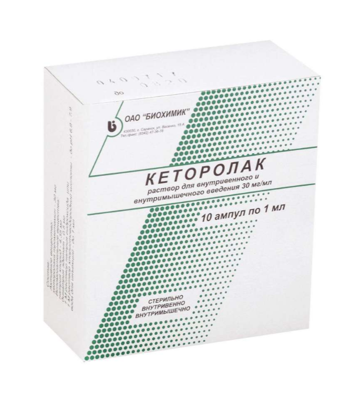 Кеторолак раствор для внутривенного и внутримышечного введения 30мг/мл ампулы 1мл №10
