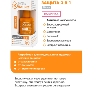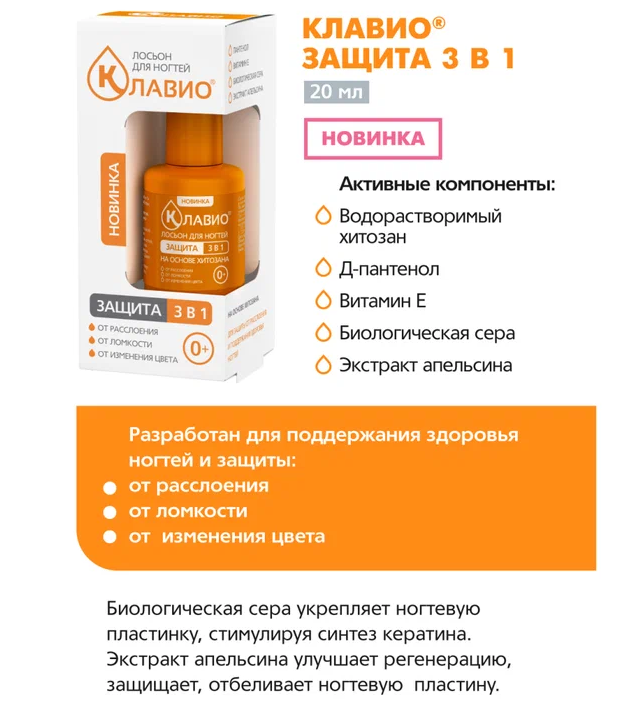 КЛАВИО лосьон для ногтей "Защита 3 в 1" специально разработан для защиты от расслоения и поддержания здоровья ногтей: