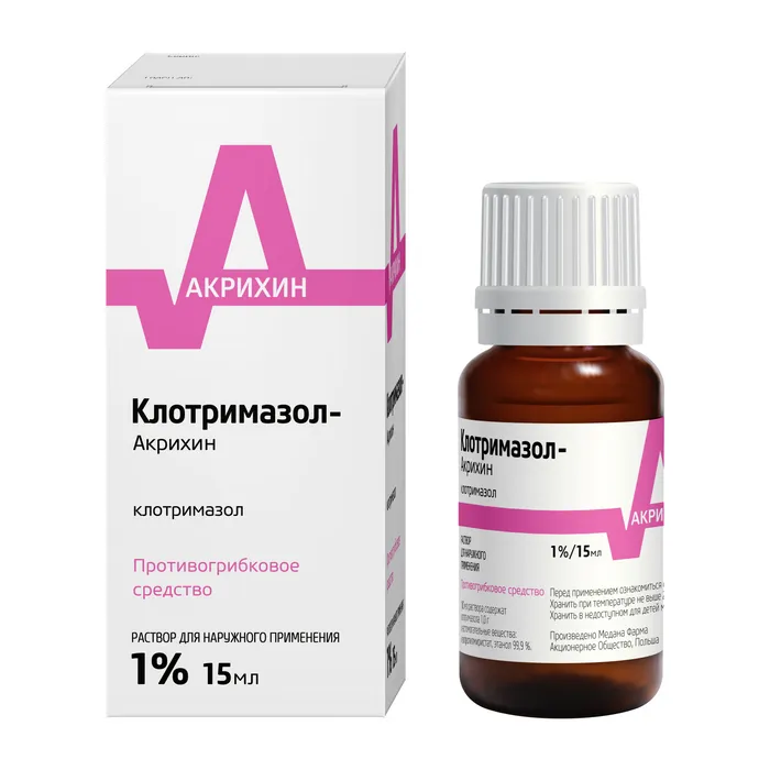 Клотримазол-Акрихин раствор для наружного применения 1% флакон 15мл