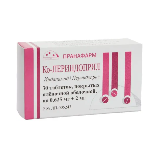 Ко-Периндоприл таблетки покрытые плёночной оболочкой 0,625мг+2мг №30