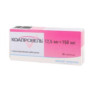 Коапровель таблетки покрытые плёночной оболочкой 12,5мг+150мг №28