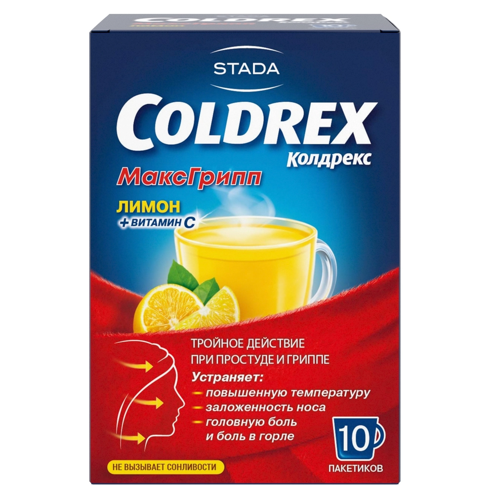 Колдрекс МаксГрипп порошок для приготовления раствора для приема внутрь с ароматом и вкусом лимона пакетики 6,427г №10