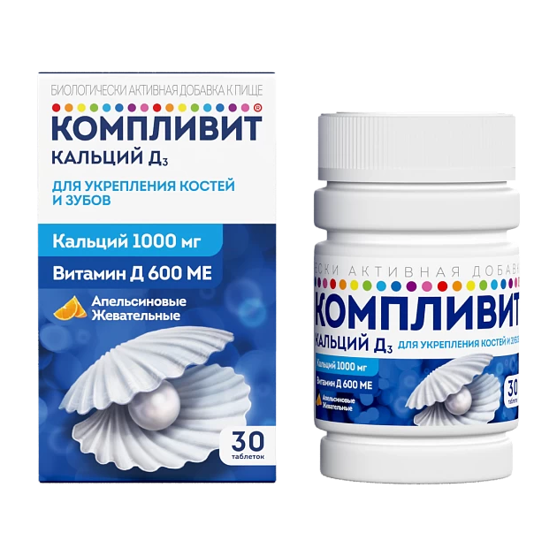 Биологически активная добавка «Компливит® Кальций Д3» является дополнительным источником к пище кальция и витамина Д3 (300 МЕ в 1 таблетке).