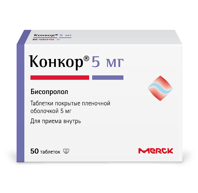 Конкор таблетки покрытые плёночной оболочкой 5мг №50