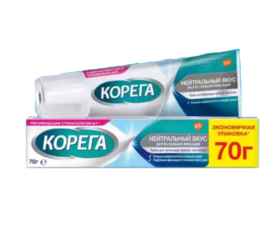 Корега Нейтральный вкус Экстра сильная фиксация крем для фиксации зубных протезов туба 70г