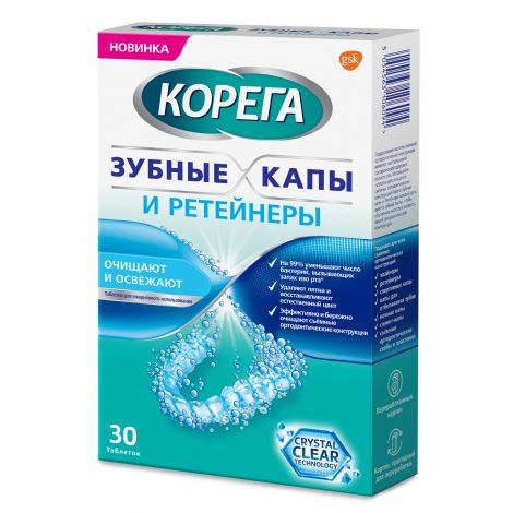 Корега Зубные капы и ретейнеры таблетки для очищения съемных ортодонтических конструкций №30