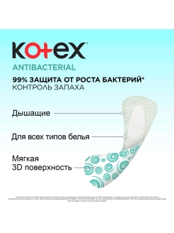 Ежедневные прокладки Kotex Antibacterial Экстра Тонкие с антибактериальным слоем созданы специально для современной девушки.