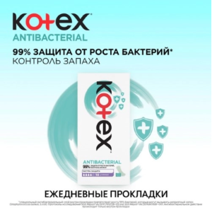 Гигиенические Kotex® Antibacterial Длинные обладают уникальным свойством — зелёный антибактериальный слой Тихин на 99% предотвращает рост бактерий внутри прокладки. Аналогов этого продукта в линейках конкурентов на данный момент нет. Кроме того, благодаря утроенному количеству абсорбирующих волокон эти ежедневки впитывают в три раза больше. Их верхнее 3D покрытие дарит ощущение защиты на весь день. Каждая прокладка идёт в индивидуальной упаковке, что особенно удобно, если ты планируешь взять их с собой. Будь уверена в комфорте и свежести с инновационным продуктом Kotex® Antibacterial Длинные!