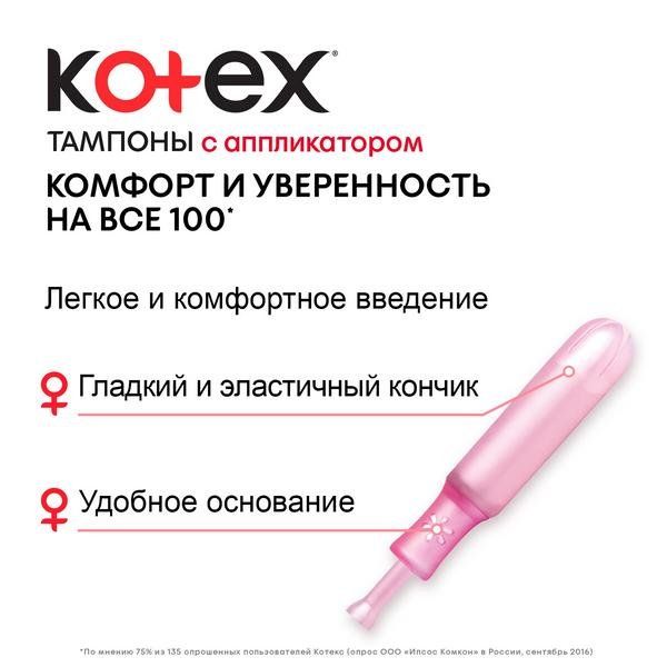 Бренд KOTEX - это бренд средств гигиены женщин в критические дни. Бренд принадлежит производственной компании Кимберли Кларк. Бренд гигиенической продукции марки очень разнообразен, что позволяет без труда подобрать подходящий именно для себя и конкретной ситуации вариант защиты. KOTEX ТАМПОНЫ SUPER с аппликатором - подарят тебе новый уровень комфорта. Гладкий и эластичный кончик аппликатора и удобное нескользящее основание обеспечивают максимально комфортное и гигиеническое введение. Аппликаторные тампоны Котекс производятся из высококачественных волокон вискозы. Женственный дизайн. Впитываемость: 4 капли.