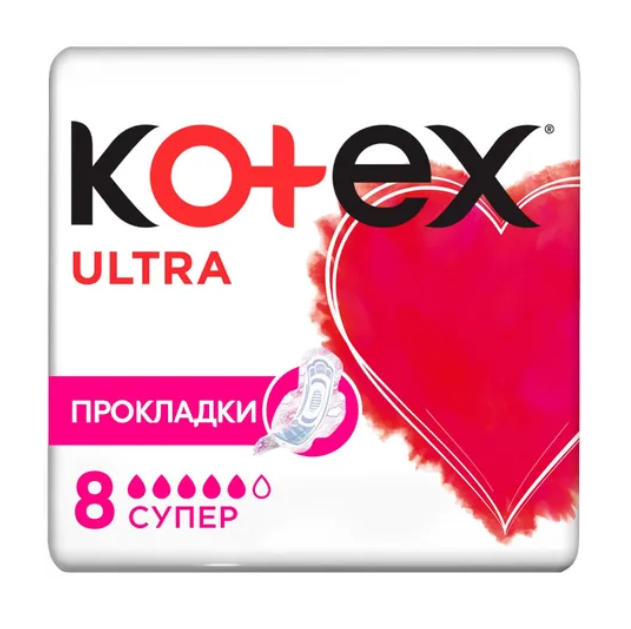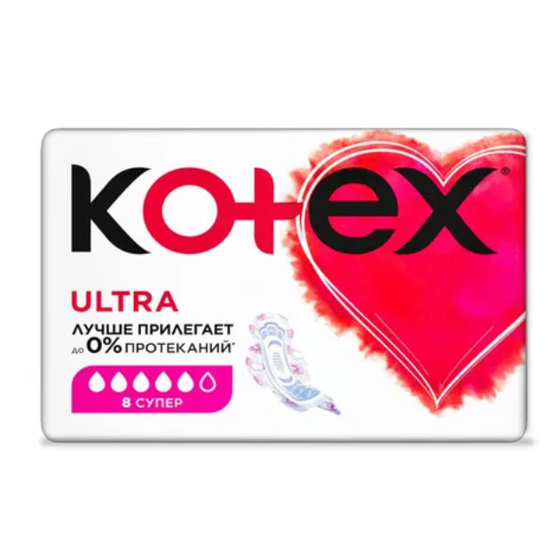 Женские гигиенические прокладки Kotex Ultra СУПЕР НОВЫЕ Kotex Ultra СУПЕР с удлиненным задним краем для обильных выделений. Улучшенная защита и новый стильный дизайн. Обеспечивают комфорт и уверенность до 100%* Прокладка стала более гибкой, чтобы лучше подстраиваться под анатомию твоего тела и защищать от протеканий. ЛУЧШЕ ПРИЛЕГАЕТ до 0% ПРОТЕКАНИЙ* Выбирай упаковку с сердечком! Уникальный 3D центр -быстро впитывает Эластичные желобки - придают прокладке гибкость для защиты от протеканий сзади Подстраивающийся внутренний слой - адаптируется под анатомию твоего тела Покрытие мягкая сеточка для максимального комфорта и сухости кожи Мягкие крылышки, надежно крепятся к белью и не натирают кожу Эстетичная форма прокладки и нежный женственный дизайн добавят удовольствия при использовании Обновленный дизайн упаковки - стильный и современный Выбирай упаковку с сердечком! *Опрос потребителей. Россия. 2019. По сравнению с предыдущей линейкой Котекс Ультра Нормал.
