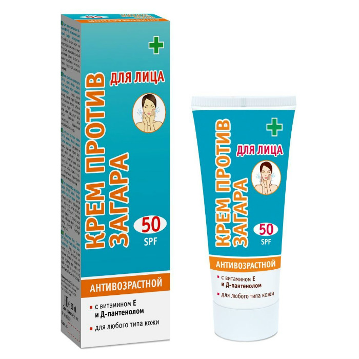 Крем Толокнянка и Солодка против загара для лица SPF-50 Антивозрастной содержит фильтр высокой степени защиты останавливает процесс выработки меланина в коже, обеспечивая тем самым первый уровень отбеливания.