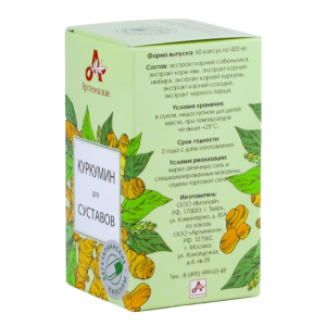 В Куркумине для суставов содержатся минералы: кальций, магний, железо, калий, фосфор, иод, микроэлементы, витамины: С, В, Е, К, флавоноиды, органические кислоты – растительного происхождения, а это легко усваивается организмом человека. Противовоспалительное и регенерирующее действие на суставы усилено добавлением экстрактов корней сабельника, коры ивы, корня имбиря, корня солодки. Уникальный состав БАДа оказывает на организм противовоспалительное, жаропонижающее, иммуностимулирующее, хондропротекторное действие (восстановление хрящевой ткани суставов). В практической медицине используют при артрозах, артритах, остеохондрозах и проблемах с позвоночником. Биодоступность БАД Куркумин для суставов многократно увеличена экстрактом черного перца.