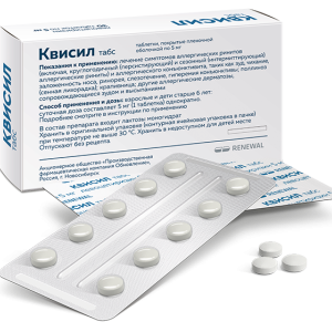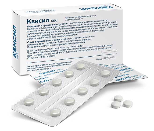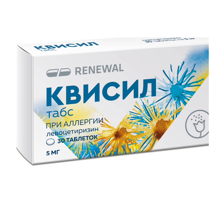 Левоцетиризин — действующее вещество препарата Квисил табс — это R-энантиомер цетиризина, мощный и селективный антагонист гистамина, блокирующий H1-гистаминовые рецепторы. Левоцетиризин оказывает влияние на гистаминозависимую стадию аллергических реакций, а также уменьшает миграцию эозинофилов, уменьшает проницаемость сосудов, ограничивает высвобождение медиаторов воспаления.