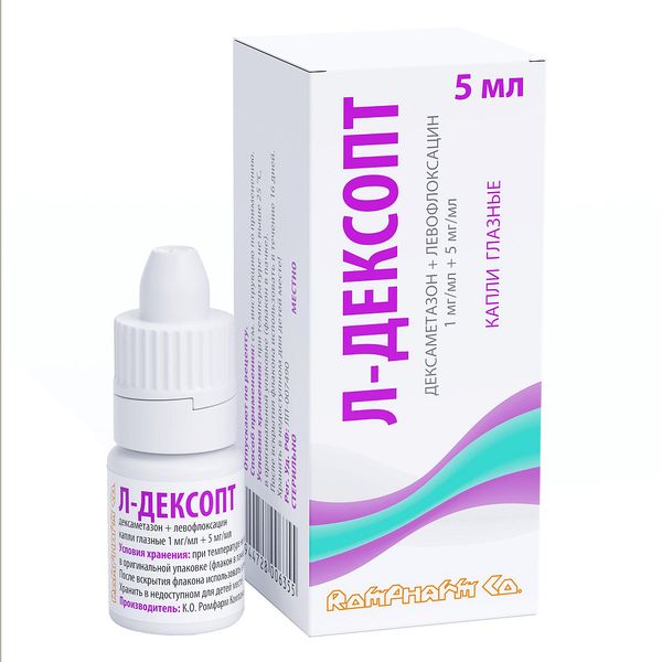 Л-Дексопт капли глазные 1мг/мл+5мг/мл флакон-капельница 5мл