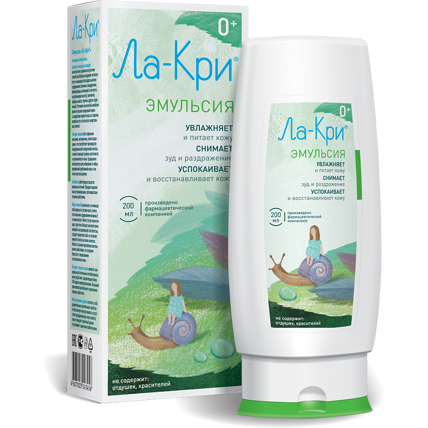 Эмульсия Ла-Кри это комплексное средство для интенсивного питания кожи, склонной к сухости, покраснению, раздражению и зуду. Восстанавливает водно-липидный баланс кожи, укрепляя ее защитную функцию. Рекомендуется для ежедневного ухода за чувствительной кожей детей с первых дней жизни и взрослых.