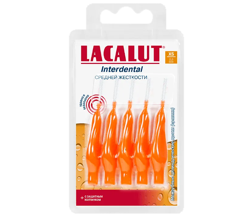 Использование интердентальных щеток Lacalut Interdental позволяет удалить зубной налет и остатки пищи из межзубных промежутков и с контактных поверхностей зубов , осуществляют массаж десен. Используются для чистки зубных брекетов и протезов.