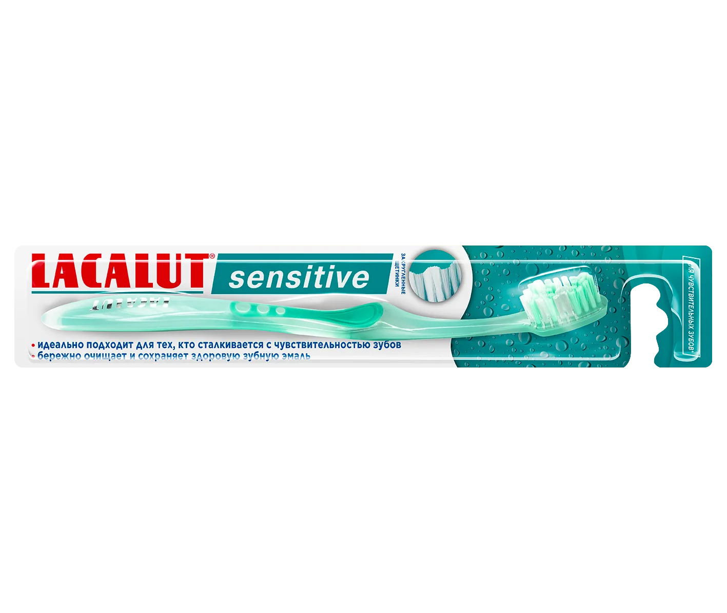 Зубная щетка Lacalut sensitive предназначена для чистки чувствительных зубов. Она имеет очень мягкие, закругленные нейлоновые щетинки и волнообразный профиль. За счет клиновидной головки щетка обеспечивает деликатное и качественное удаление налета со всей поверхности эмали, включая пришеечную зону и труднодоступные для чистки области.