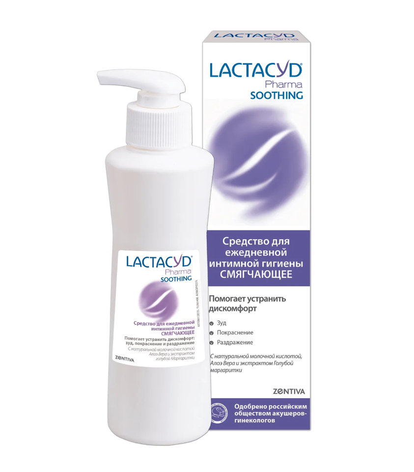 LACTACYD PHARMA SOOTHING помогает облегчить ощущение вагинального дискомфорта. Экстракт Голубой маргаритки и Алоэ Вера, входящие в состав средства, обладают противовоспалительными и успокаивающими свойствами. Экстракт Голубой маргаритки мягко успокоит и смягчит раздражённую зону, а Алоэ Вера обеспечит противоспалительное действие и способствует её восстановлению.