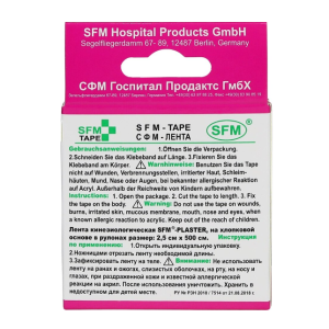 Лейкопластырь кинезио тейп SFM 2,5 см Х 500 см, представляет собой эластичную хлопковую ленту на клейкой гипоаллергенной основе.